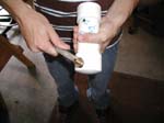 The first step is to glue the end caps to you pipe. To do this, first clean the outside of the ends of the pipe with the PVC cleaner. Also, clean the insides of the end caps. Next, put a thin coat of PVC glue around the outside of the ends. The glue should cover about 1" from the end, and make sure the glue is all the way around the outside of the pipe. Place one cap on each end, and tap it on untill they are snug. Give the glue a few minutes to dry.
